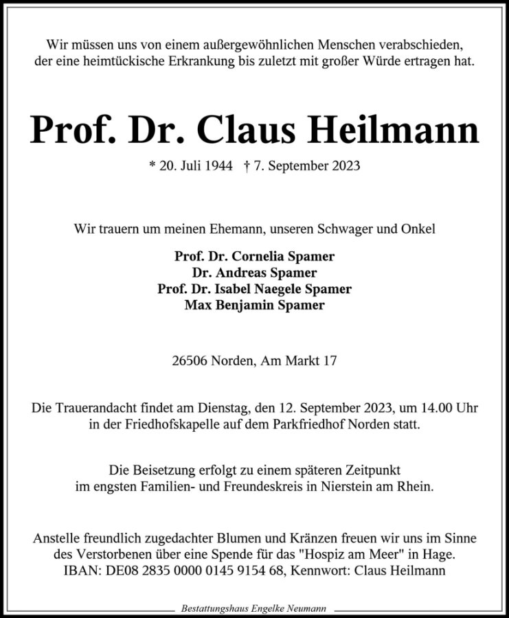 Prof. Dr. Claus Heilmanngestorben am 7. September 2023